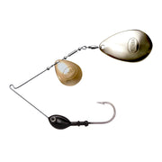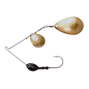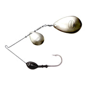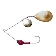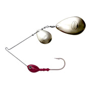 The Original Spinnerbait can be customized by selecting the head size and color and blade finish to create a custom fishing lure. This spinnerbait is designed as a colorad/Indiana blade combination where parts are assembled by Rumba Doll.