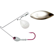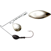 The Original Spinnerbait can be customized by selecting the head size and color and blade finish to create a custom fishing lure. This spinnerbait is designed as a tandem blade combination where parts are provided by Rumba Doll but not assembled.